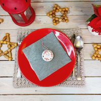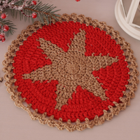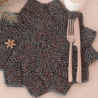 Ezt a kötött tányéralátétet a karácsonyi ünnepi asztalra gondolva kötöttük, de bármilyen családi esemény asztalának ünnepi dísze lehet.