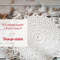 A Szenteste egyik legfontosabb pillanata, amikor a család leül a szépen terített asztalhoz! Díszítsük fel az ünnepi asztalt makramé rotjokkal fűszerezett horgolt alátéttel! Ehhez az alátéthez válassz sodrott pamut makraméfonalaink közül, így a rojtokat akár szépen ki is fésülheted!
