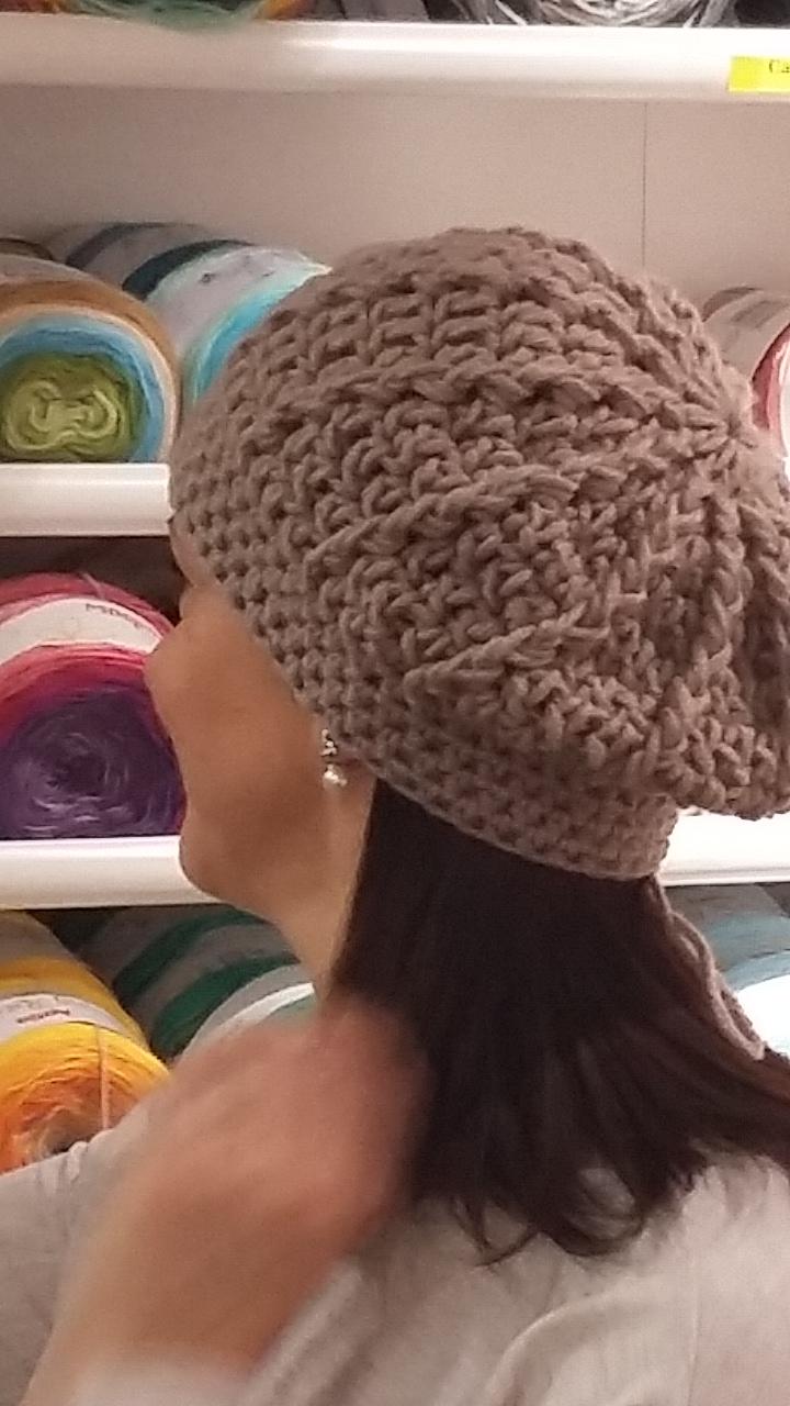 Ezt a beret stílusú bugyros sapkát azért szeretem, mert az én rengeteg hajam is aláfér, csinos és egyáltalán nem ódivatú. Ha a régi franciasapkák élnek az emlékeidben, amiket nem lehetett jól felvenni, akkor azokat felejtsd el. Ez a sapka szuper jól néz ki szerintem mindenkin, ha kontyban, lófarokban hordod a hajad, akkor egyenesen kötelező, de kiengedett, vagy rövid hajjal is csinos!