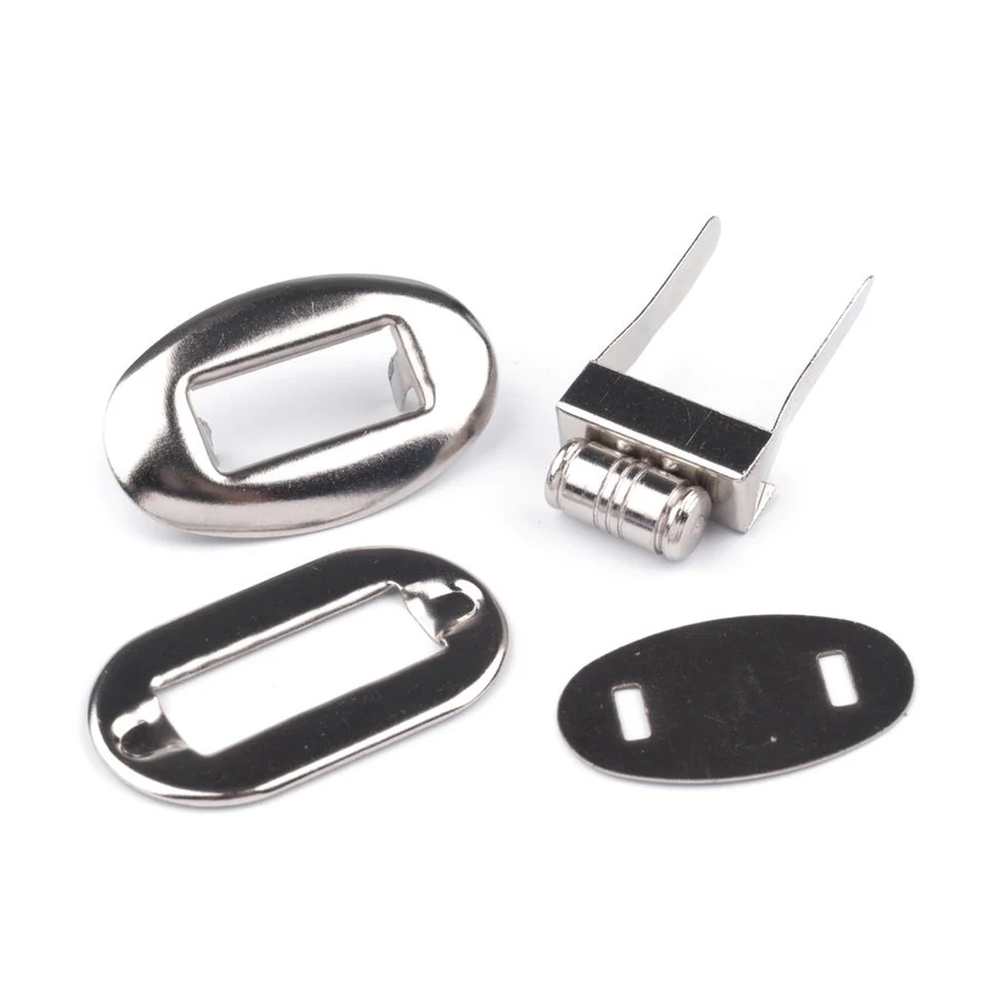 Elfordítható táskakapocs, amire vásárlóink már rég vártak. A kapocs négy részből áll, mivel a kapocs mindkét elemének van hátlapja is. A kapocs egyik elemét a táska elejére, a másikat a táska lehajtójára kell erősíteni.