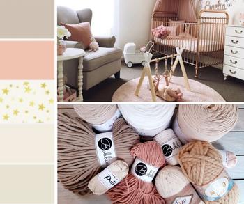 Talán ez a mai nap kedvence nálunk! Biztosan hallottatok már a Roségold színről, az elmúlt években nagyon felkapott szín a lakberendezésben. Fonalak kapcsán a Blush-Sand – Gold hármasa az, amivel leginkább meg lehet közelíteni ezt a színhatást. A Bobbiny Natural Gold zsinórjai és makraméfonalai pont annyi csillogást adnak a Blush és Sand meleg árnyalataihoz amennyivel ez a kombináció valóban tündöklő lesz. Természetesen más fonal típusok között is találtok hasonlóárnyalatokat, hiszen az Alize, Nako, vagy Kartopu fonalak is hatalmas színválasztékkal állnak rendelkezésetekre.